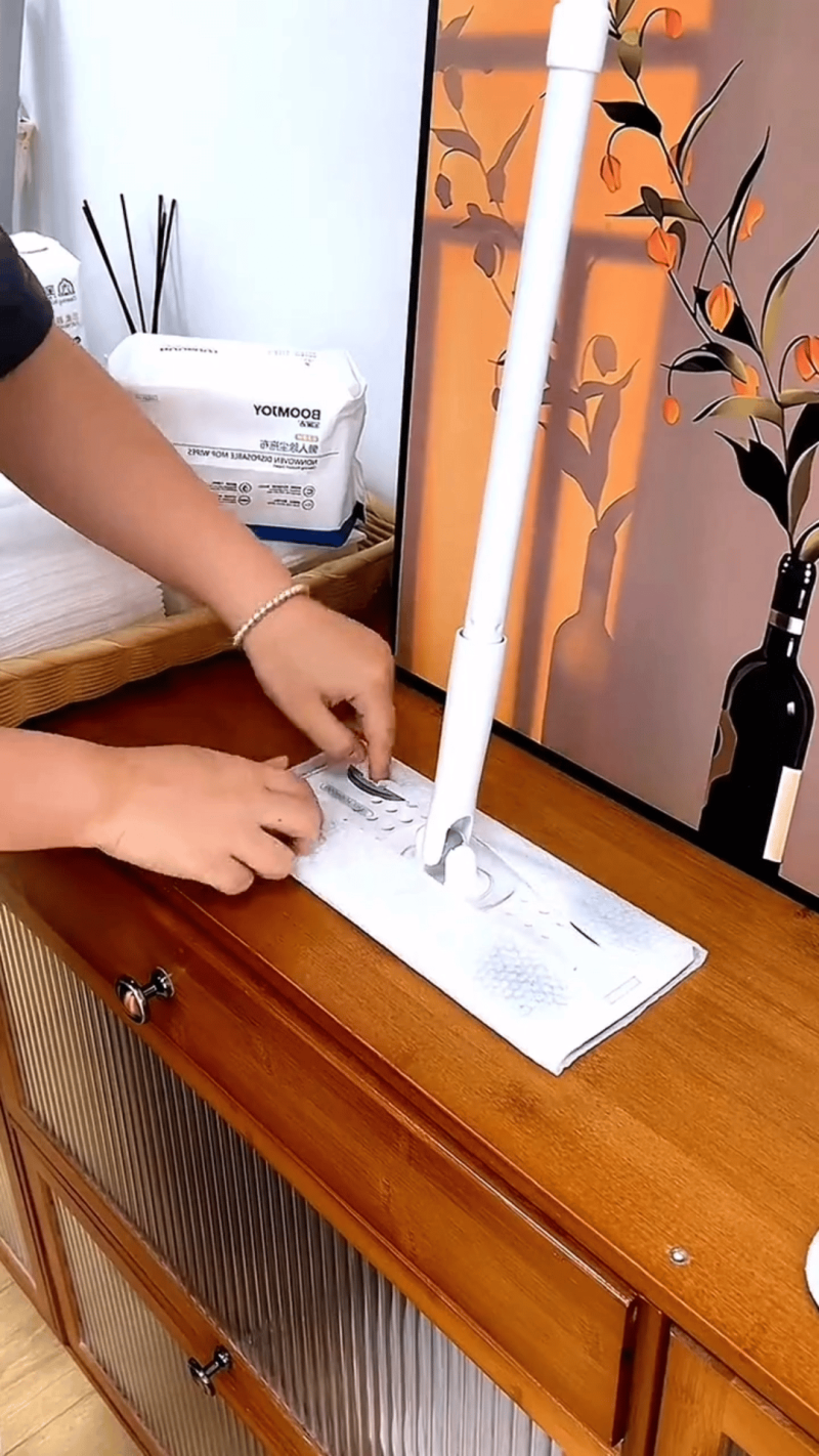 لەگەڵ مۆپی تەخت بەکاری بهێنە کە کلیپ یان کونیان هەیە بۆ بەستنەوەی مۆپ بە ئاسانی.