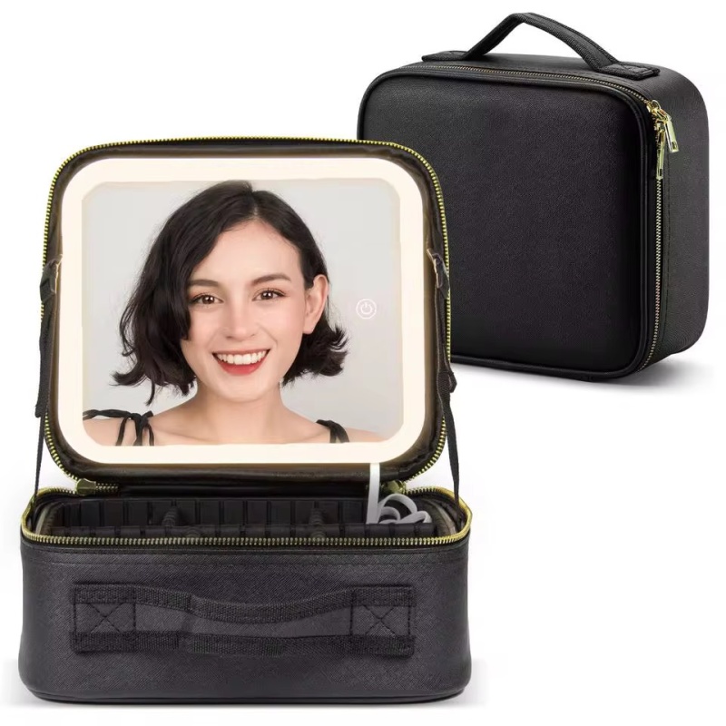 تُعد هذه الحقيبة منظماً لمستحضرات التجميل مصمماً خصيصاً للسفر والاستخدام اليومي، حيث تتميز بمرآة مدمجة مزودة بإضاءة LED قابلة للشحن عبر USB، مما يتيح لكِ وضع المكياج في أي مكان وأي وقت.